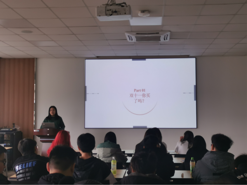 茅静婷首先为同学们阐释了“理性消费”的概念,通过数据让同学们认识到过度消费带来的不良影响,并与同学们进行互动,讨论生活中一些不理性消费的现象,呼吁同学们树立正确的消费观念,合理管理生活开支,避免不必要的消费,进一步加强同学们理性适度消费的意识。