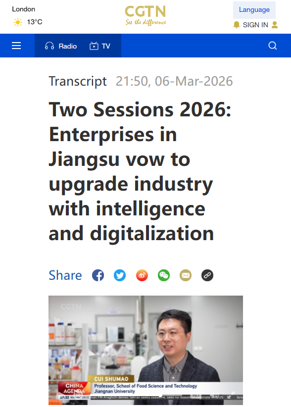 近日,正值全国两会召开的关键时刻,特食院的创新实践获得了国家级媒体的高度关注!中国国际电视台(CGTN)在其国际传播平台显要位置推出专题报道,向全球展示特食院如何以中试平台创新模式赋能产业升级,探索科技成果高效转化的新路径。